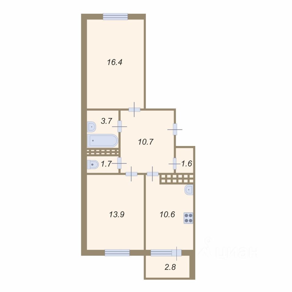 Планировка этой квартиры по данным Циан