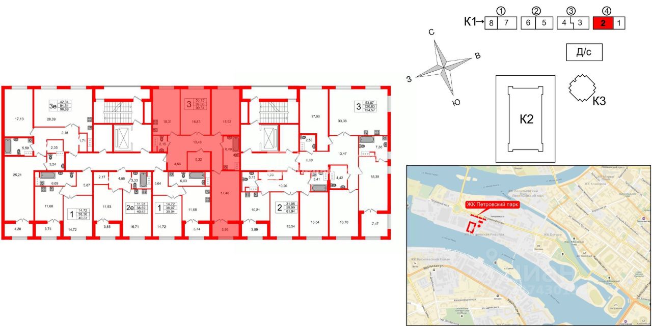 Номер объявления: 21426 - назовите его оператору. Предлагает Вашему вниманию просторную 3Е квартиру в престижном ЖК "Петровский квартал на воде"