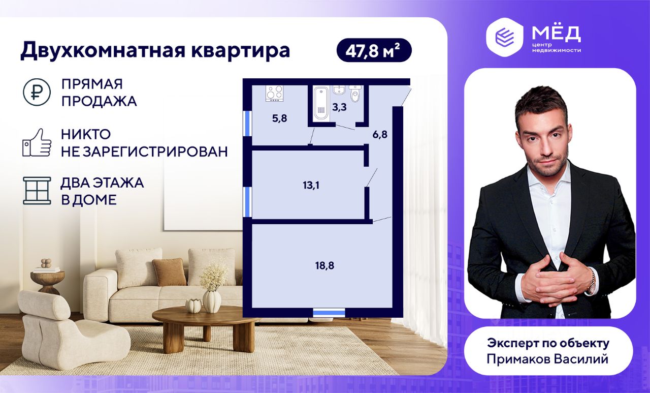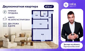 - Общая площадь: 47,8 кв.м