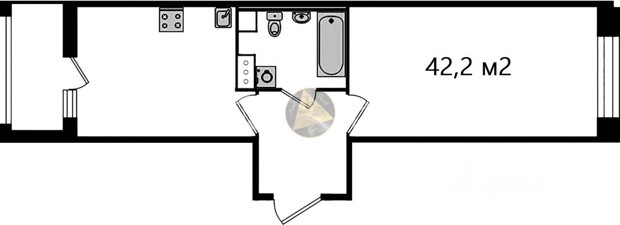 Квартира находится на 8/12 этаже. Общая площадь квартиры 42,2 м2