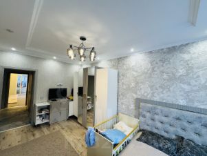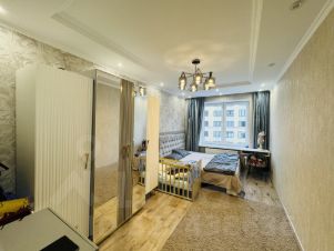 В квартире выполнен евроремонт, обеспечивающий комфорт и стиль. Гостиная и спальня обставлены современной мебелью, а кухня оборудована всей необходимой техникой. Планировка включает один совмещенный и один отдельный санузел, что очень удобно для семейной жизни. Окна выходят во двор, поэтому вас не будут беспокоить шумы улицы. Также есть лоджия, где можно организовать уютное место для отдыха или игровую зону для детей.