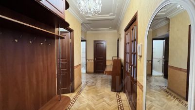 15 лет назад выполнен качественный ремонт — натуральный наборный паркет, плитка в санузлах, лепнина на потолках. Основа сохранена в хорошем состоянии, требуется лёгкая косметическая актуализация.