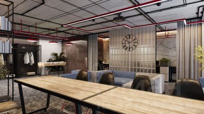 Все апартаменты сдаются с полной чистовой отделкой, выполненной в концептуальном индустриальном стиле. Стены оформлены обоями под покраску в сером оттенке. Одна из стен акцентная - с декоративной штукатуркой, имитирующей бетон. Элементы черного металла представлены в трековых светильниках, дверной фурнитуре и сантехнике. На полу уложен износоустойчивый ламинат с деревянной фактурой. Еще одним элементом индустриального стиля в отделке апартамента является крупноформатный керамогранит на полу и стенах санузла, имитирующий фактуру и цвет кортеновской стали.