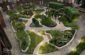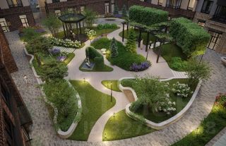 • Камерный сад, зеленая гостиная, фонтан.