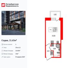 Удобная, классическая, функциональная европланировка, вместительная прихожая 3.01 м². Общая площадь студии - 21.65 м², жилая 15 м², высота потолка 2.75 м.