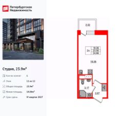 Продается уютная студия от застройщика в жилом комплексе "Сэтл Лофт" в престижном Московском районе.