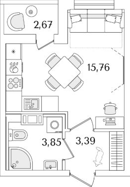 Квартира находится в 17 этажном доме, в ЛайнерЪ на 7 этаже. Общая площадь квартиры 24,30 кв.м.