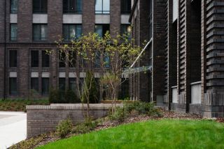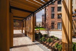 Разнофактурные фасады притягивают внимание и придают кварталу свой неповторимый характер. Каждую секцию хочется рассматривать как отдельный самодостаточный элемент, при этом все вместе они образуют законченную гармоничную композицию.