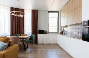 Амортизация ремонта минимальная, квартира продается с мебелью и техникой и полностью готова к проживанию. При отделке использовались качественные европейские материалы, установлена дорогая сантехника, мебель изготовлена по индивидуальному проекту.