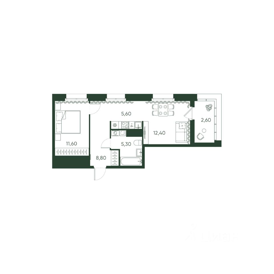 Продаётся 1-комнатная квартира в строящемся доме (Корпус 3), срок сдачи: III-кв. 2028, общей площадью 46.3 кв.м., на 6 этаже. Новый жилой дом от застройщика "Название застройщика" расположен по адресу: Россия, Санкт-Петербург, улица Моисеенко