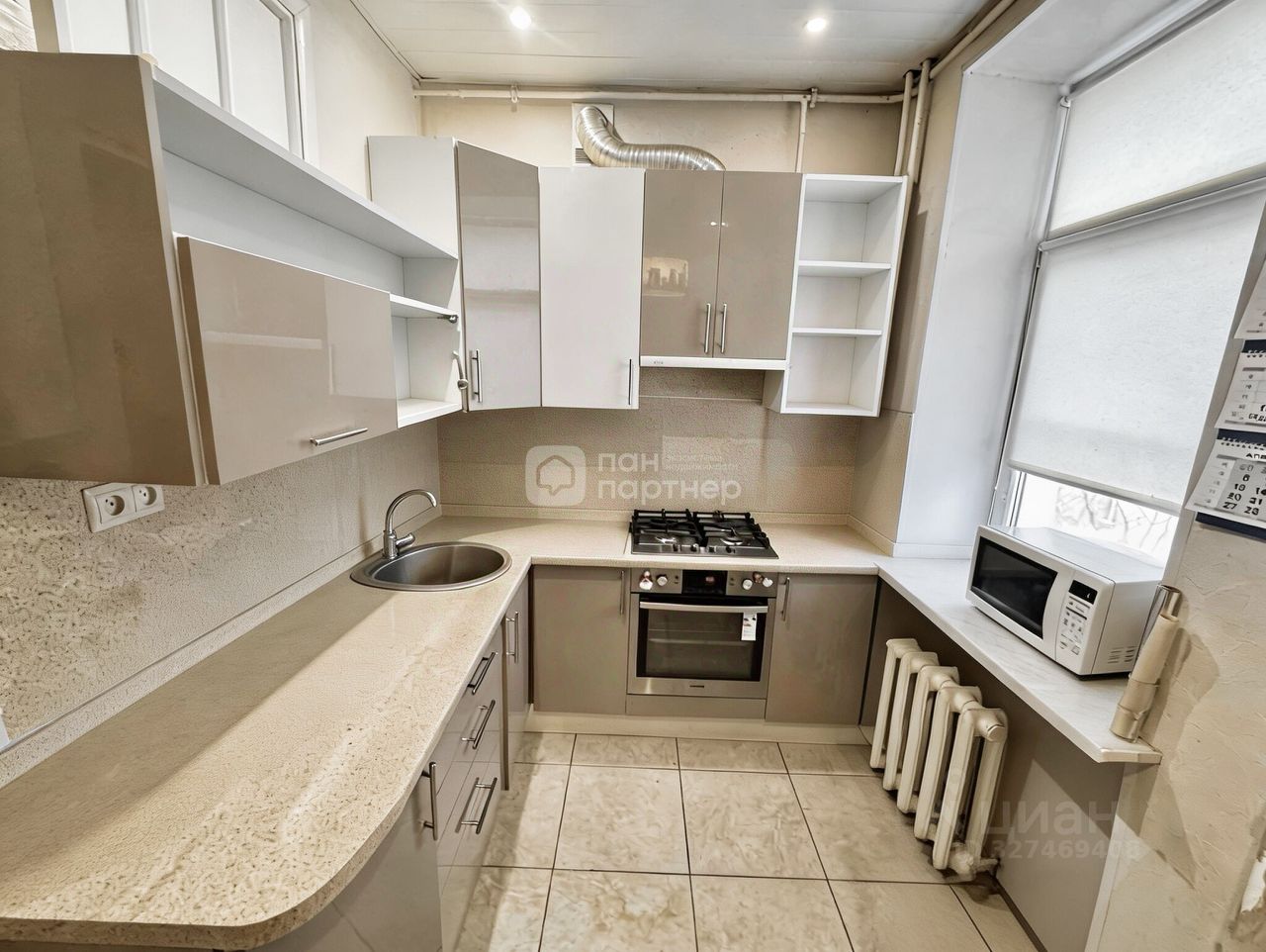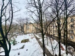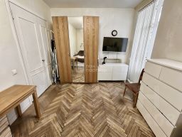 Квартира расположена на углу здания, благодаря чему в помещениях много естественного света. Окна выходят на улицу, а высокие потолки 2,9 м создают ощущение простора и свободы.