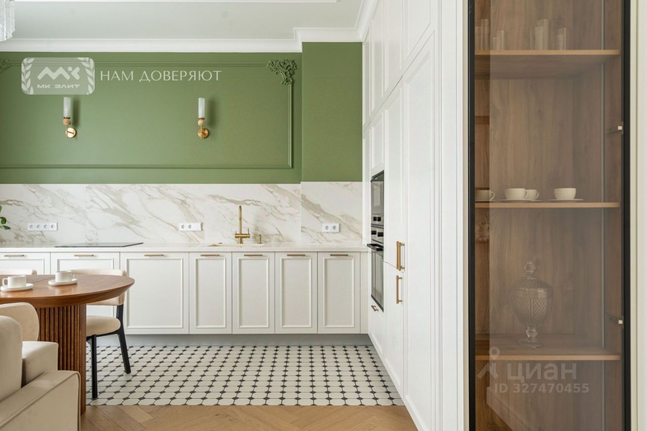 2. Премиальный ремонт: выполнен со вкусом и останется актуальным долгие годы. Встроенная мебель на заказ (МДФ, эмаль, фурнитура Blum), техника Kupperbusch, Asko, Liebher, на полу инженерная доска.