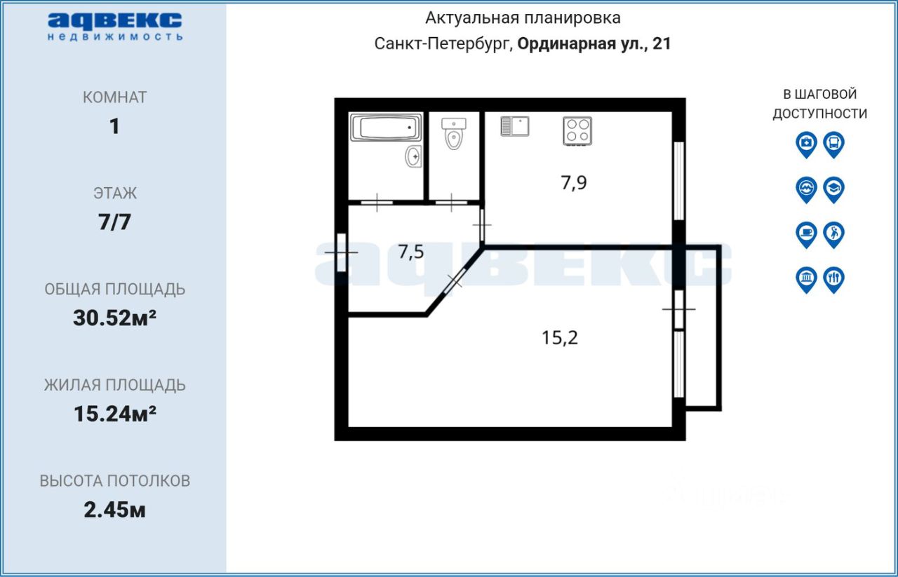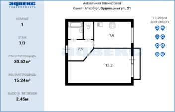 30,52 м²