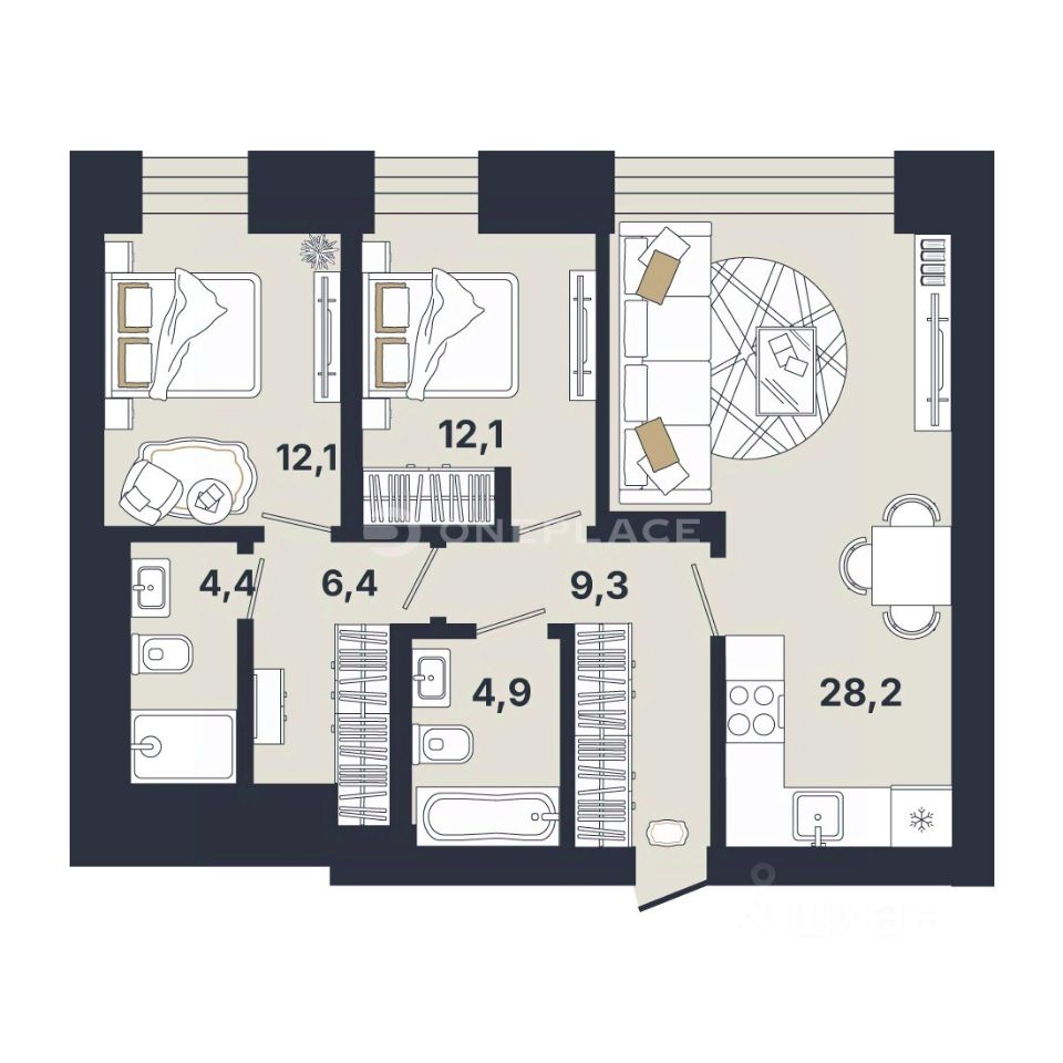 Квартира расположена на последнем этаже премиального жилого комплекса One Trinity Place. Этот проект не имеет аналогов в Петербурге и создан для ценителей высочайшего уровня жизни и комфорта.