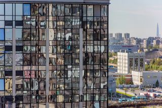 Вместо классических подъездов запроектированы просторные входные группы с витражным остеклением и высокими потолками. В интерьере холлов использованы динамичные решения: яркое впечатление достигается благодаря стильному LED-освещению и контрастным покрытиям. Помимо привычных колясочных в холлах также будут обустроены зоны ожидания и гостевые санузлы. Блок почтовых ящиков визуально дополнит интерьер.