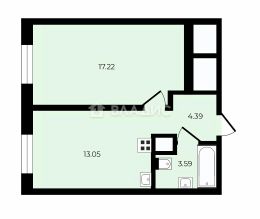 - Общая площадь составляет 37,1 м2, жилая - 17,22 м2. Комната правильной прямоугольной формы. Она зонирована на зону спальни и зону отдыха с диваном и телевизором.