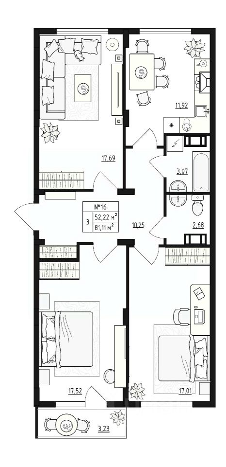 Продаётся 3-комнатная квартира в сданном доме (Сиреневая, 25к1 (Корпус 2)), срок сдачи: IV-кв. 2024, общей площадью 81.11 кв.м., на 4 этаже. В деревне Малое Верево есть все, что нужно для комфортной и спокойной жизни: рядом есть магазины, кафе, детские сады, школы и поликлиники. Ну, и конечно же, парковочные места для машин. А к моменту сдачи торгового центра - всё необходимое будет в шаговой доступности.
