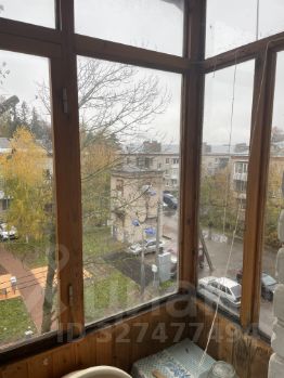 - Личная застеклённая лоджия (деревянное остекление, обшивка вагонкой, вид во двор и на деревья) — только у этой комнаты