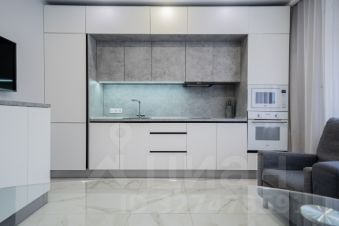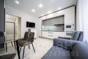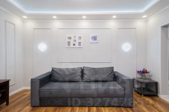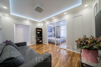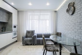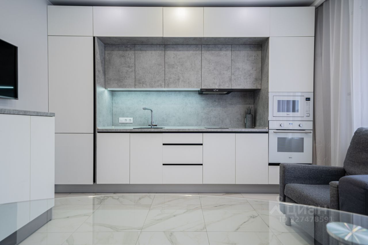 В квартире произведен качественный ремонт, установлен хороший кухонный гарнитур, пол по всей площади застелен плиткой и ламинатом, на стенах обои, установлены натяжные потолки, предусмотрены разные сценарии освещения.