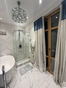 Огромная светлая кухня-гостиная 46 м², мастер-спальня с личной ванной, у которой есть СВОЁ ОКНО, две отдельные комнаты, лоджия, 2 эркера, с которых открывается прекрасный вид на бульвар. Высокий этаж. Вид на панораму города. В квартире очень тихо.