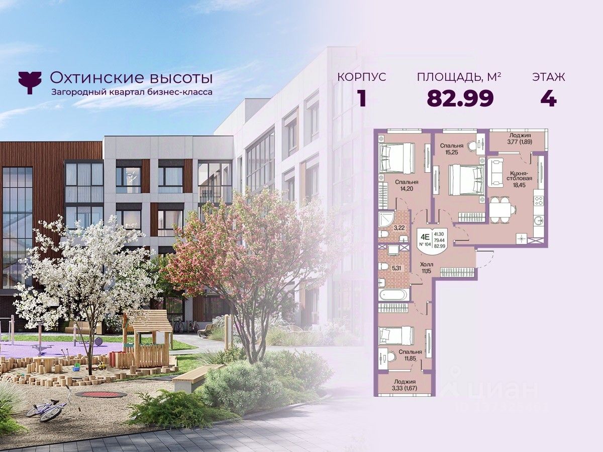 Загородный квартал бизнес-класса "Охтинские высоты" - это ваш новый образ жизни, в котором сбалансированы преимущества проживания на природе в сочетании с городскими сервисами. Квартал расположен рядом со всесезонным курортом Охта Парк, всего в 10 минутах от КАДа. В окружении расположены премиальные конные клубы, теннисные корты, банное пространство "Камыши". Также к услугам жителей легендарный лесной каток, теплый бассейн на открытом воздухе, SPA, рестораны и энотека Охта Парка, куда от квартала будет запущен шаттл только для жителей "Охтинских высот". Вокруг квартал рекреационная лесная зона невероятной красоты, буквально кислородная фабрика 24/7. Ко въезду ведет новая автомобильная дорога, специально построенная для комфорта будущих жителей "Охтинских высот". В первой очереди квартала уже реализуется детский сад на 120 мест. Запроектированы коммерческие помещения под аптеку, супермаркет, пункты выдачи заказов, кофейни и велнесс. Территория квартала безбарьерная. В каждом дворе будет выполнено уникальное благоустройство по авторскому проекту с детскими и спортивными площадками, местами для отдыха и активностей. Концепция озеленения выстроена по принципу "живописный двор круглый год". Любителям активного образа жизни особенно понравятся эксплуатируемые кровли с зонами для йоги и солярия, откуда открывается невероятный вид на зеленый лес, раскинувшийся вокруг квартала. Дворы закрытые, без машин. Безопасность жителей обеспечивает система круглосуточного наблюдения и охрана. Входные группы светопрозрачные, с увеличенными окнами "от колена". Вход с уровня земли. Жители всегда видят, что происходит во дворе и в парадной. МОПы отделами качественными материалами с фактурой дерева и камня. В каждой парадной современные грузопассажирские лифты, отдельно выделены колясочные и велосипедные. Квартал малоэтажный, всего 4 этажа. Высота потолков при этом от 3 м и выше. Квартиры спроектированы таким образом, чтобы закрыть потребности в ежедневном комфортном проживании для семей любого состава. В квартирах: • Живописные патио на первых этажах • Зоны для организации хранения • Мастер-спальни • Комнаты правильной формы • Просторные кухни-гостиные с комфортным зонированием • Гардеробные • Дополнительные санузлы • Увеличенные окна 2х2 м • Система управления комфортом в каждой квартире ("Умный дом") • Подготовка под установку кондиционера • Балконы и лоджии Все квартиры сдаются с отделкой white-box и Системой управления комфортом (умный дом). На выбор можно заказать чистовую отделку, которая представлена в двух вариантах.