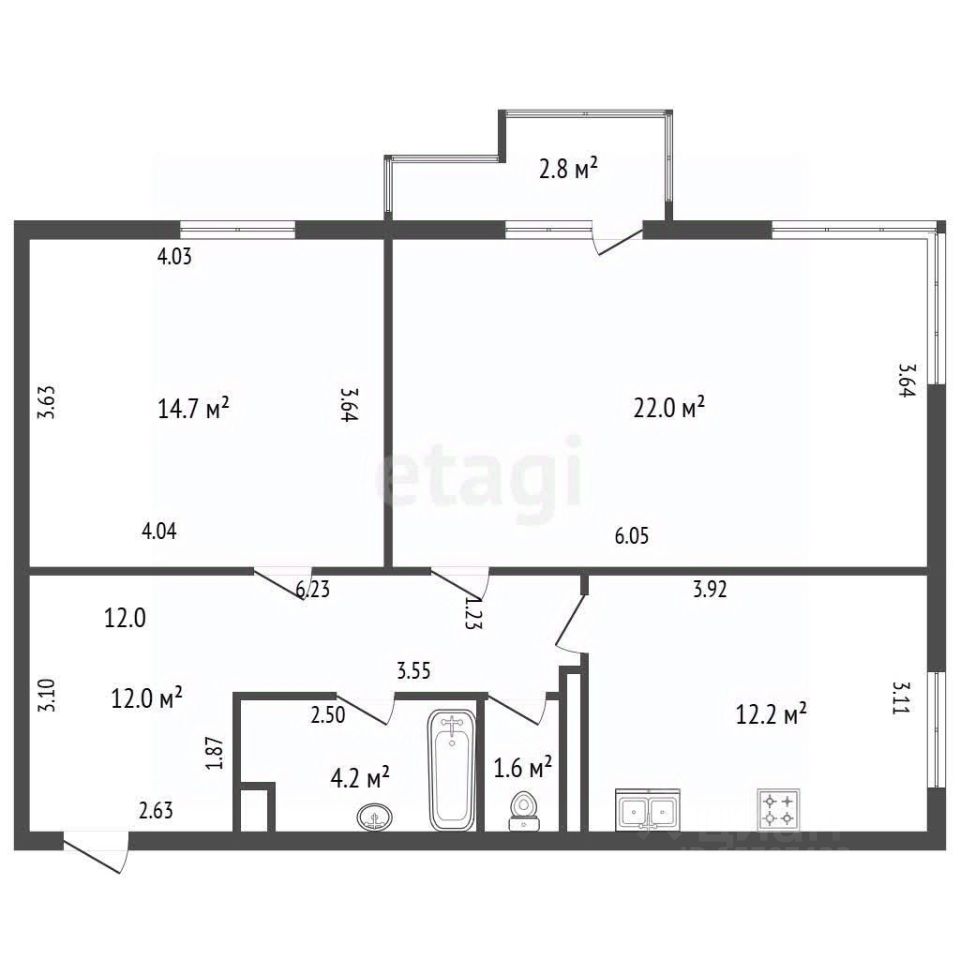 * Кухня - 12,2 м2;