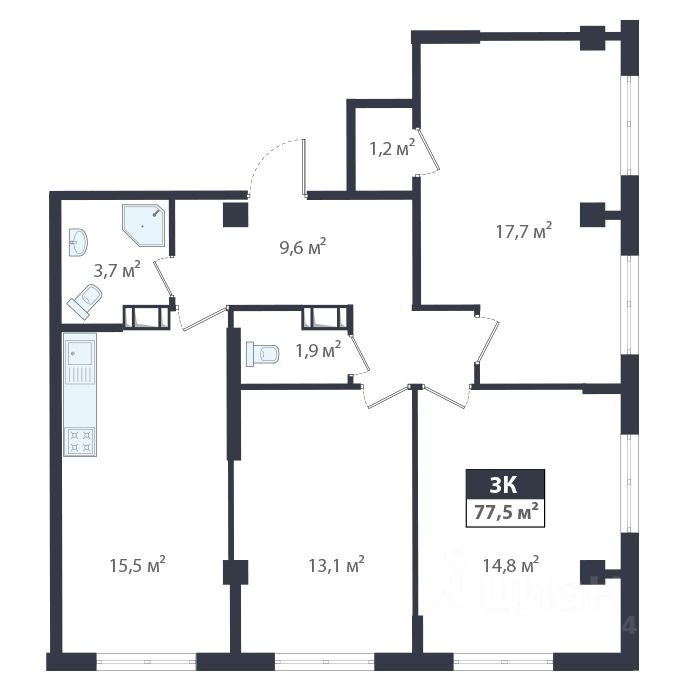 Продаётся 3-комнатная квартира в сданном доме (Дом 93), срок сдачи: IV-кв. 2024, общей площадью 77.5 кв.м., на 8 этаже. КОНЦЕПЦИЯ ЖИЛОГО КОМПЛЕКСА "РОМАШКИ"