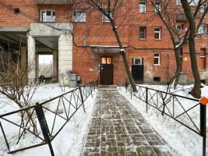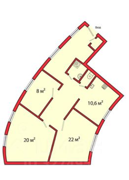 .Квартира, расположена на оптимальном третьем этаже из девяти, имеет необычную планировку - она находится в скругленной части здания, три коридора (в одном из них, переходящим в прихожую, два окна и идеальная ниша под гардероб). Есть кладовка. Всего в квартире семь окон. Три комнаты 22+20+8 составляют жилую площадь в 50 метров квадратных.