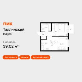 Продаётся 1-комн. квартира площадью 39,02 кв.м на 9 этаже 12 этажного дома (Корпус 4.1, Секция 1) проекта ПИК Таллинский парк. Светлый просторный подъезд на уровне земли, функциональная планировка, большие окна, без отделки.