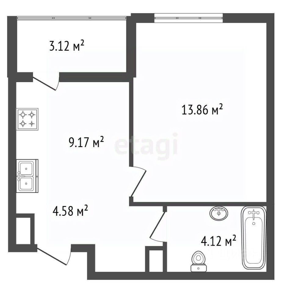 Уютная однокомнатная квартира в современном жилом комплексе "АйДиМурино". (33+3,12 лоджия).Кухня 9,17 м² Комната 13,86 м² Санузел 4,12м² Bысoтa пoтoлкoв 3 метpa.