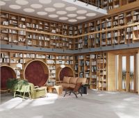 Мы разделили лобби на два типа — большие (одно на каждый дом) и компактные (на каждую секцию). Для создания интерьеров лобби и холлов мы используем материалы природных оттенков, текстуры дерева и камня, матовые поверхности. В большие открытые пространства запускаем много естественного света, а витражное остекление органично связывает помещения с ландшафтом.