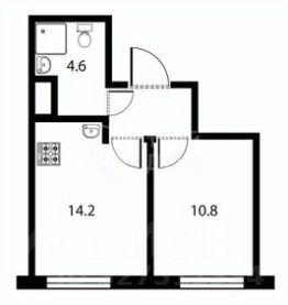 - Комната 10.8 кв.м, кухня 14.2 кв.м