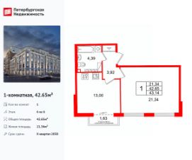 Продается просторная 1-комнатная квартира от застройщика в жилом комплексе "Кристалл Холл" в Адмиралтейском районе.