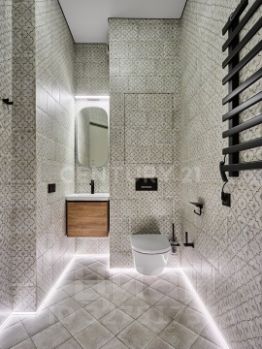 Сантехника и мебель в санузлах Villeroy&Boch, смесители Hansgrohe из премиальной линейки;