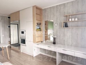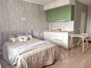 Студия полностью готова к заселению. Выполнен качественный ремонт, а также установлена стильная и функциональная мебель: