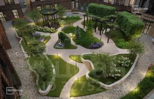 • Камерный сад, зеленая гостиная, фонтан.