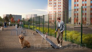 В зелёных и облагороженных дворах есть всё и для семей с детьми: тематические площадки, детский сад и даже школа. Комфортная среда для питомцев - еще одно преимущество "Октябрьской набережной": рядом с домами находится площадка для выгула собак.