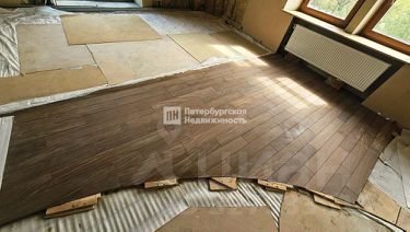 - Паркет (премиум-класса) из массива дерева трёх оттенков (толщина 2 см). Полы на фото закрыты, для исключения повреждений.