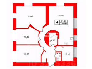 - Изолированные комнаты: 27,9 м2, 18,1 м2, 15,1 м2