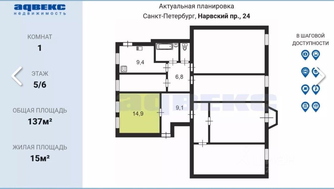 14,9 м²