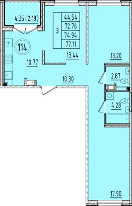 Общая площадь72,76 м²