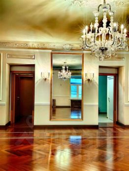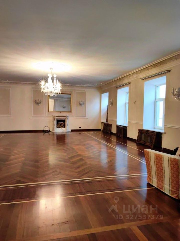 Вход в парадную из первого двора от набережной р. Фонтанки. Квартира общей площадью 187,2 кв.м., находится на 6 этаже, состоит из 2-х изолированных комнат (20,5 и 15,5 кв.м ) и большого зала (90,3 кв.м.), из которого есть арочный проход в помещение, предназначенное для размещения кухни. Квартира двухсторонняя, окна выходят в два больших двора. В квартире два сан/узла. Потолки высотой 3,2 м. Пол паркет ценных пород, в центральном зале потолки с лепниной и действующий камин. Квартира светлая и теплая. В доме установлен современный лифт. Двор закрыт и находится под круглосуточной охраной.