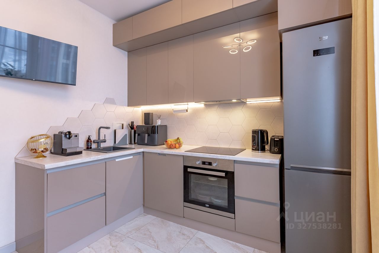 Кухня с гарнитуром и полным комплектом встроенной техники.