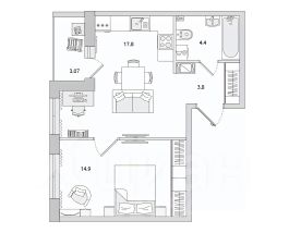 Кухня-гостиная 17,8 м² с выходом на лоджию 3,07 м² — идеальное место для ужинов и релакса
