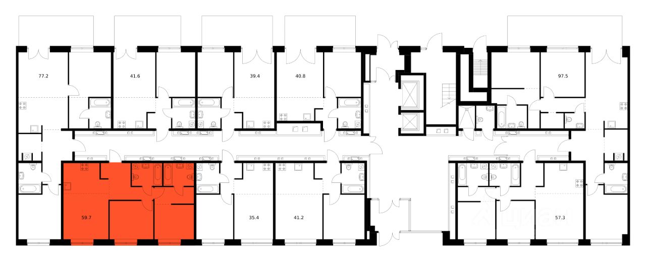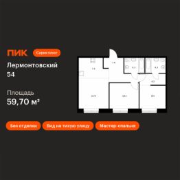 Продаётся 2-комн. квартира площадью 59,3 кв.м на 1 этаже 9 этажного дома (Корпус 2.2, Секция 13) проекта ПИК Лермонтовский 54. Светлый просторный подъезд на уровне земли, функциональная планировка, большие окна, без отделки.