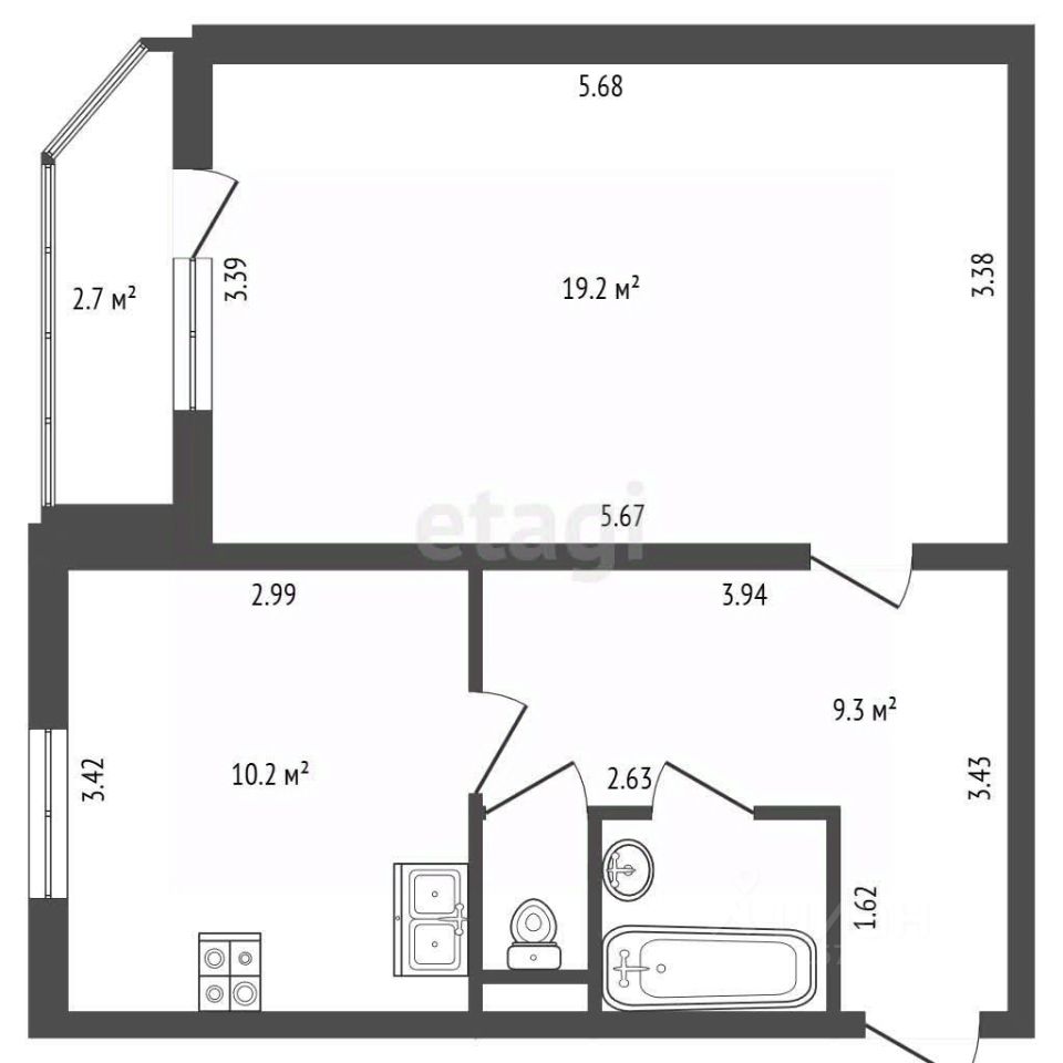 Просторная однокомнатная квартира площадью 42.2 м², расположенная в хорошо обустроенном спальном районе, предлагается к продаже полностью готовой к проживанию.