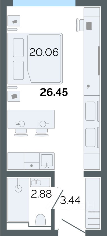 Общая площадь26,45 м²