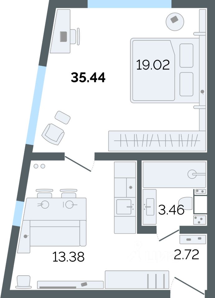 Общая площадь37,95 м²