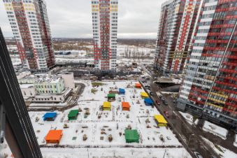 Квартира находится на 14 этаже 25-этажного монолитно-кирпичного дома.