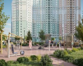 На территории: собственный торговый комплекс на проспекте Просвещения, фитнес-клуб с двумя бассейнами.